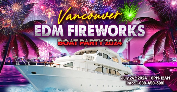 Experience the ultimate fireworks show on the water! The Vancouver EDM Celebration of Lights Boat Party 2024 offers spectacular views, great music, delicious food, and stunning scenery. Don’t miss out on this amazing night!