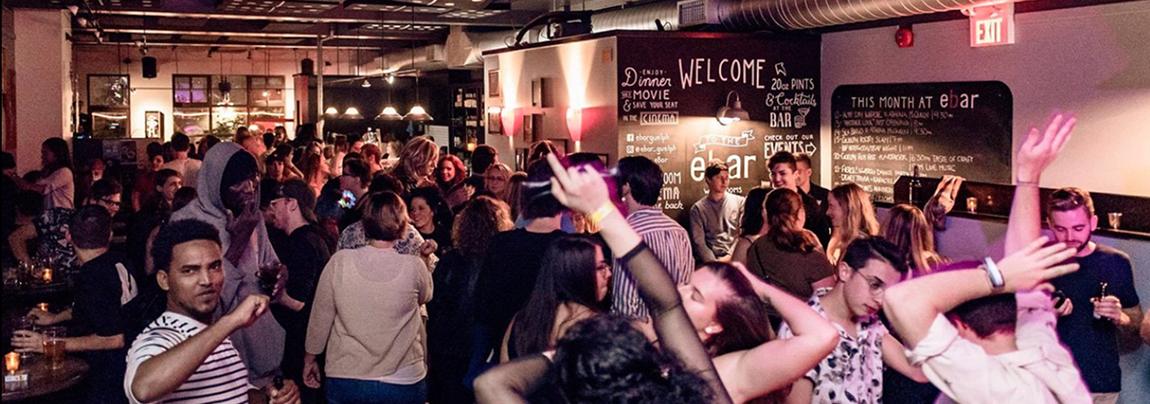The E-Bar, originally established in 1988 in downtown Guelph, Ontario, was a beloved entertainment venue connected to The Bookshelf bookstore, known for its lively atmosphere and diverse programming. For decades, it hosted live music, burlesque performances, dance parties, and community events, making it a central gathering spot for locals and visitors alike. Celebrated for supporting emerging artists and the LGBTQ2A+ community, The E-Bar cultivated a creative, inclusive, and vibrant cultural scene. During the COVID-19 pandemic, the venue closed, marking the end of an era, but its spirit was preserved through its transformation into artBar, managed by the Guelph Arts Council. artBar continues the venue's mission by serving as an office space by day and a performance space by night, hosting concerts, theatre productions, and arts-focused events. Today, it stands as a testament to Guelph's thriving arts community, honoring The E-Bar's legacy while providing a modern space for creativity, connection, and cultural engagement.